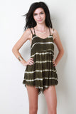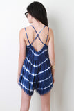 This casual romper features tie-dye fabric, adjustable double spaghetti straps that criss-cross at back, relaxed fit, and finished with fringe hem. Accessories sold separately. 100% Cotton.