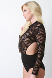 This bodysuit features a fishnet design fabrication, mock neckline, keyhole cutout in chest area and long sleeves. Finished with side cutouts, a zipper fastener at back and brief bottoms. Accessories sold separately. Made in U.S.A. 90% Rayon, 10% Spandex.