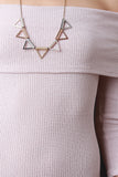 This jumpsuit features a ribbed knit fabrication, off shoulder bardot neckline, three quarter sleeves, and figure hugging silhouette. Finished with taper cut legs. Accessories sold separately. Made in U.S.A. 90% Polyester, 10% Spandex.