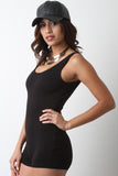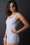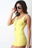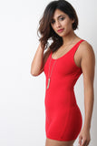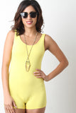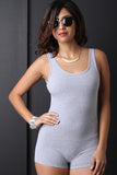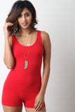 This casual romper features a jersey knit fabrication, scoop neckline and back, and sleeveless construction. Accessories sold separately. Made in U.S.A. 92% Cotton, 8% Spandex.