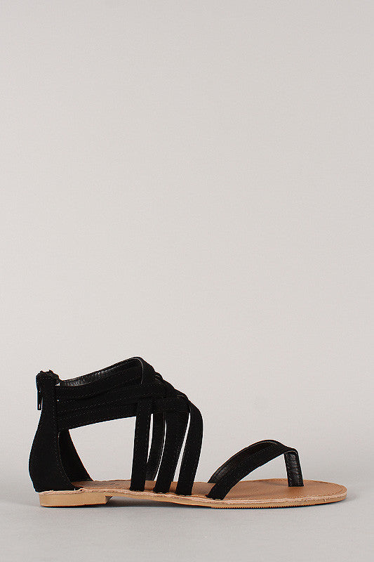 Dare to be different in these stylish flat sandals . Features strappy caged design at vamp, open toe front, stitching accents, and finished with rear zipper closure for easy on/off.