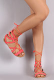 • Qupid Strappy Caged Lace Up Flat Sandal