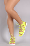 This sandal features an open toe silhouette, cutout design vamp, and adjustable lace-up closure.