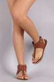 This edgy sandal features a snake embossed vegan leather upper, t-strap construction, studs detailing, and wide ankle cuff with adjustable buckle closure.