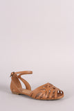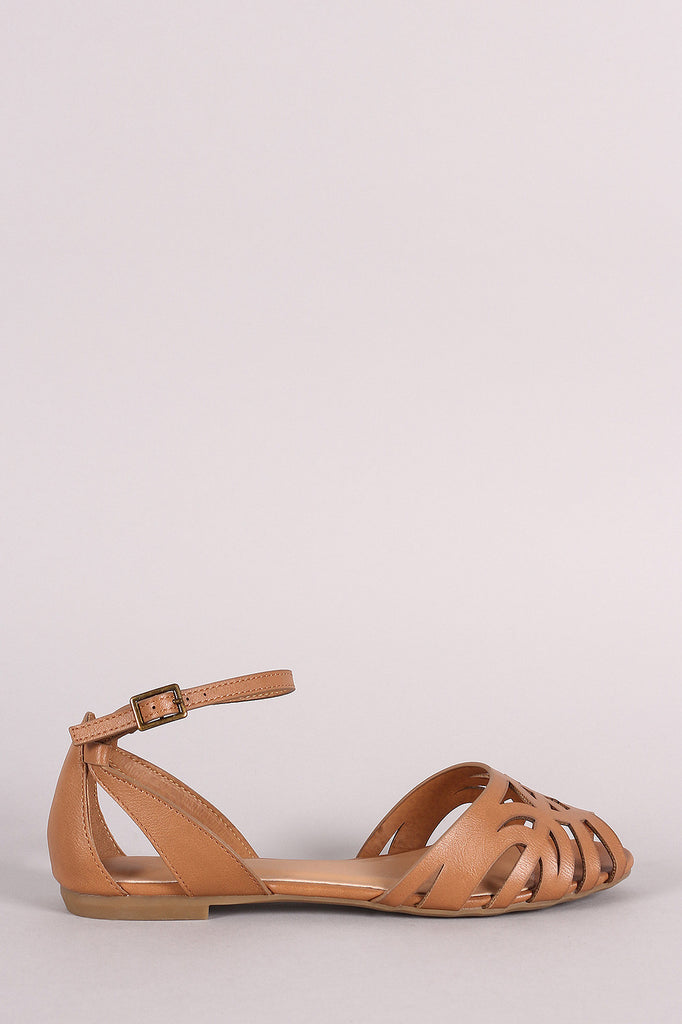 This adorable flat sandal features a peep toe silhouette, caged cutout design vamp, lightly padded insole, and adjustable ankle strap with buckle closure.