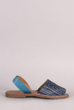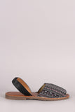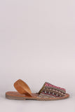 This flat sandal features an aztec print design, open-toe silhoutte, and easy slip-on with vegan leather slingback closure.