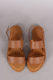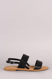 This casual flat sandal features double band across vamp, open toe silhouette, and slingback with adjustable buckle closure. Finished with a lightly padded insole.