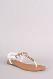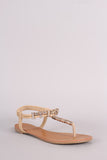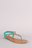 Metallic Ornament Embellished T-Strap Flat Sandal