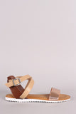 • Bamboo Colorblock Crisscross Ankle Strap Lug Sole Flat Sandal