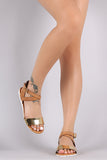 Bamboo Colorblock Crisscross Ankle Strap Lug Sole Flat Sandal