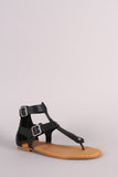 This edgy gladiator construction with adjustable buckles accent, T-strap design with studded detail, and slight heel. Finished with a lightly padded insole for comfort.