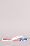 This flat sandal features the Stars and Stripes print, thong construction, and easy slip-on design. Finished with a lightly padded insole.