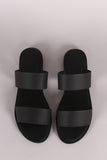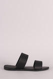 This casual flat sandal features double vegan leather upper wide bands across vamp, and easy slip-on construction. Finished with a lightly padded insole for comfort.