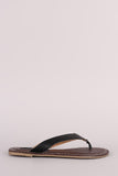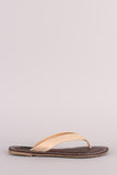 This flat sandal features a wide v-strap design, croco embossed detail, lightly padded insole, and easy slide style.