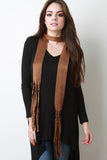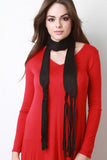 This chic fringe design at the end, and finished with raw edges. 100% Polyester.