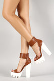 This heel features a leatherette upper, open toe, single vamp strap, ankle cuff, rear zipper closure, chunky heel, and finished with cushioned insole for comfort.