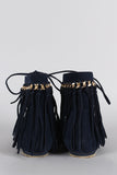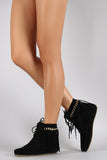 These boho-chic  fringe  decor at the opening, and razor-cut sole. Finished with cushioned insole, smooth interior lining, and lace up front closure.