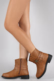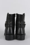 These sturdy  ankle boots  feature a strappy design on shaft with studs/metallic hardware accents, rounded toe, top stitching details, and block heel. Finished with cushioned insole, soft interior lining, and side zipper closure for easy on/off.