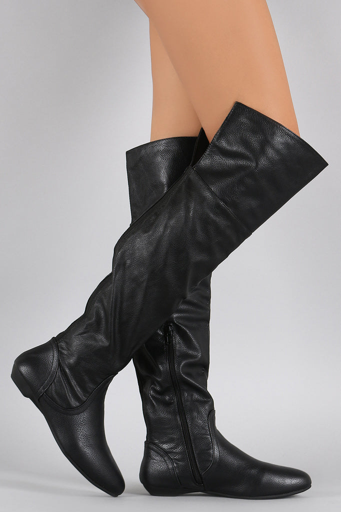 These length, depending on personal height. Designed with elastic gores for an eye catching custom fit; featuring, a mid-way inner side zipper for on-off wear. Slouchy shaft and almond toe structure with light faux fur lining.