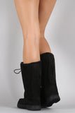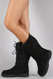 These cozy flat boots feature a round toe with moc stitching accents, soft faux fur interior lining, cushioned insole, and lace up closure.