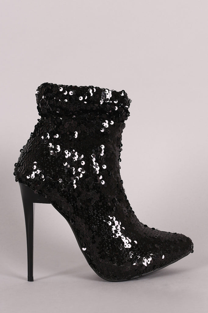 These alluring pointy toe silhouette, slouchy sequin embellished shaft, low hidden platform, and stiletto heel. Finished with cushioned insole, smooth interior lining, and easy pull-on construction.
