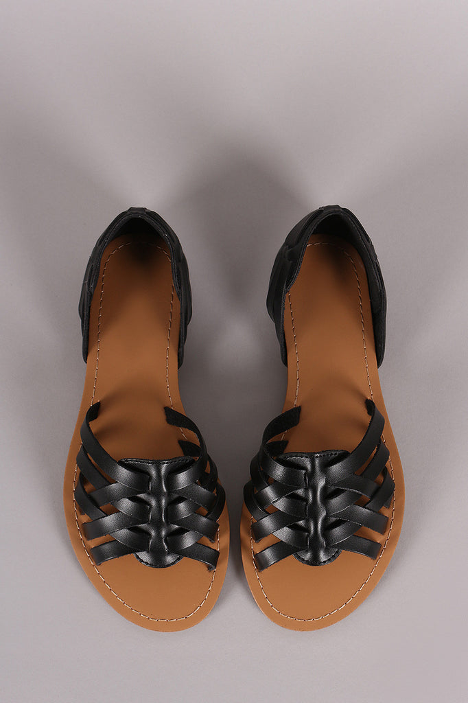 This breezy  flat  features an open toe silhouette, strappy woven design upper, and easy slip-on construction.