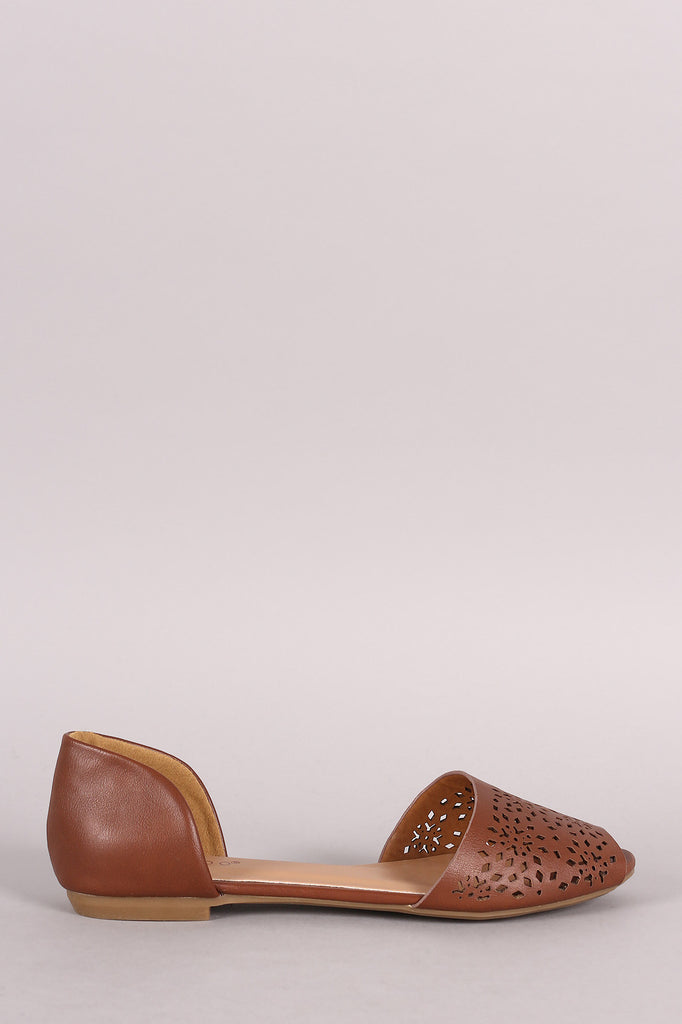 This chic slip-on  flat  features a peep toe silhouette, open shanks, perforated details, and lightly padded insole.
