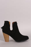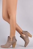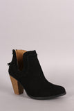 These western ankle boots feature an almond toe, notched shaft with stitched accents, and chunky stacked heel. Finished with cushioned insole and convenient back-zip closure.