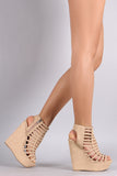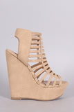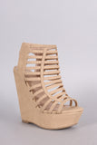 This fabulous wedge features an open toe silhouette, strappy caged construction, wrapped platform, and wedge heel. Finished with lightly padded insole and convenient side-zip closure.