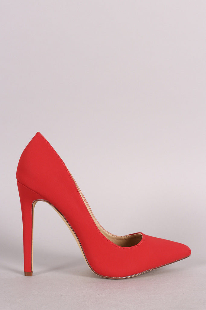 This pointy toe silhouette, scoop vamp, and wrapped stiletto heel. Finished with lightly padded insole and easy slide style.