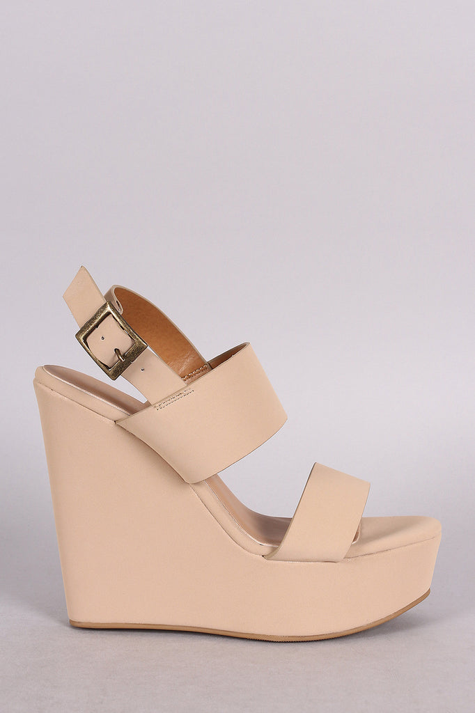 This leg-lengthening heel is on platform wedge . Open toe silhouette, featuring two bands across the vamp. Finished with an adjustable ankle strap.