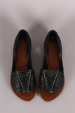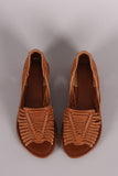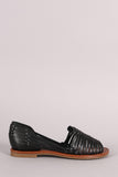 This adorable flat features a peep toe silhouette, strappy woven design throughout, lightly padded insole, and easy slip-on construction.