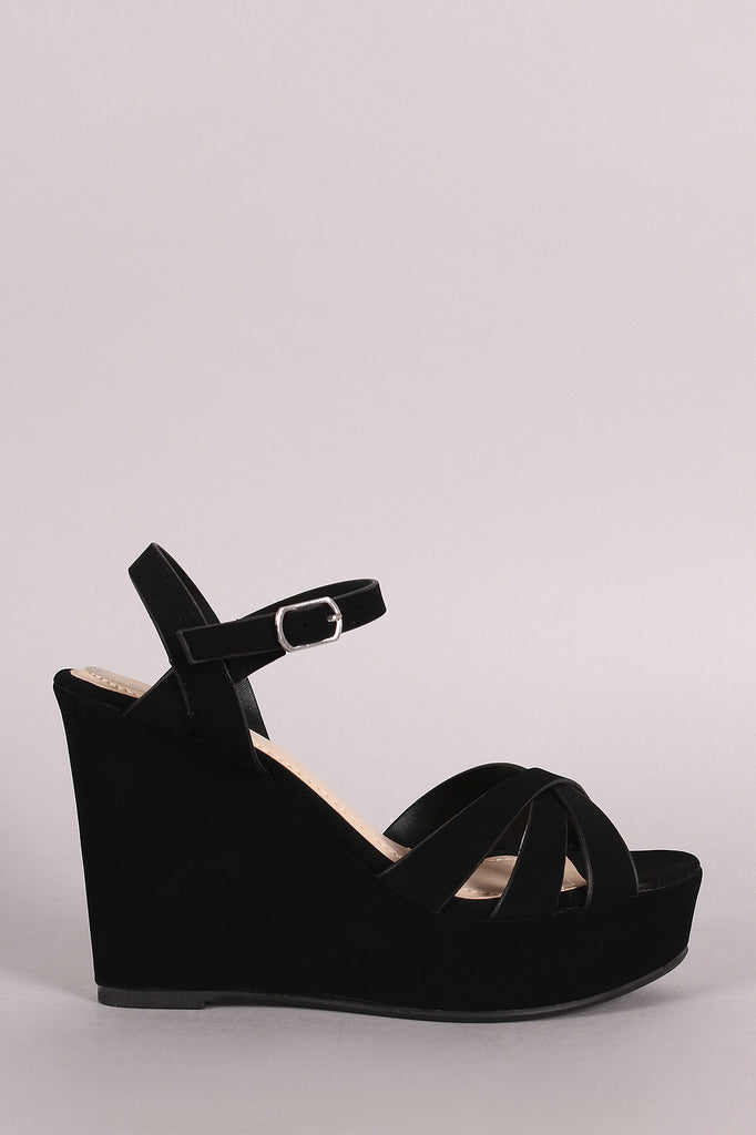 This lovely  wedge  sandal features a crisscrossing straps design, open toe silhouette, and wrapped platform wedge heel. Finished with lightly padded insole and adjustable ankle strap with side buckle fastening.