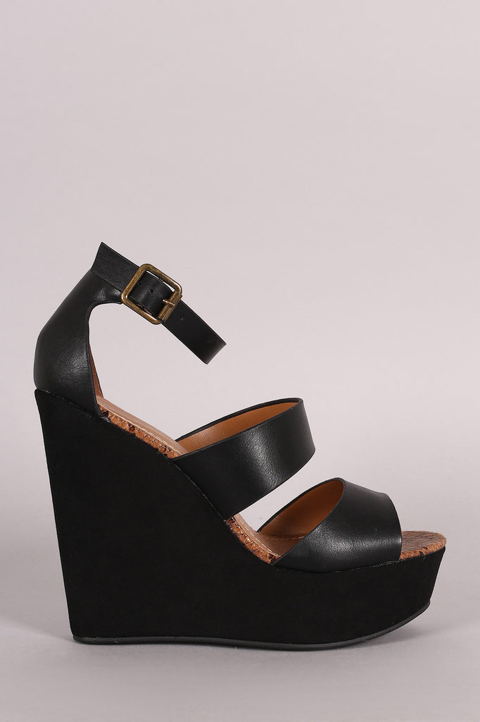 This breezy wedge sandal features an ankle strap with adjustable side buckle fastening, open toe silhouette, and double smooth vegan leather straps. Finished with a wrapped platform wedge heel and lightly padded insole for comfort.