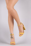 This classic chunky heel, featuring an adjustable ankle strap.