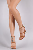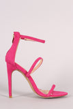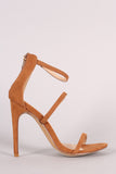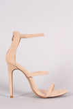 This gorgeous  heel  features an open toe silhouette, triple skinny straps, and wrapped stiletto heel. Finished with lightly cushioned insole and rear zipper closure for easy on/off.