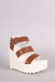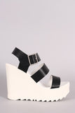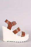 This sporty lug sole , and platform wedge heel. Finished with a lightly padded insole and adjustable ankle strap with buckle closure.