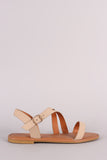 This summery flat sandal features an open toe silhouette, one band across vamp, asymmetrical instep strap with an adjustable buckle closure, and lightly padded insole for comfort.
