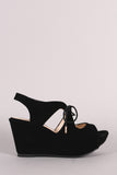 This lovely wedge features a cutout nubuck upper ankle tie closure, open toe silhouette, and platform wedge heel. Finished with lightly padded insole for comfort.