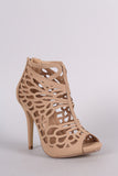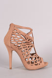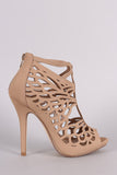 This gorgeous heel features a caged construction with butterfly wing cutout design, peep toe silhouette, and wrapped stiletto heel. Finished with a lightly padded insole and rear zip-up closure for convenience.