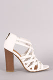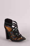 These open toe heels are on chunky stacked heel, featuring a strappy cage design. Finished with an adjustable rear back zipper.