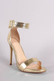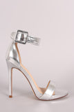This lovely heel features an open toe silhouette, wrapped stiletto heel, lightly padded insole, and adjustable ankle strap with buckle fastening.