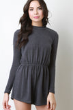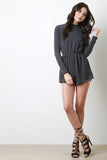 This alluring romper features a mock neck, keyhole with button closure at back, long sleeves design, and finished with cinched waist line. Accessories sold separately. Made in U.S.A. 96% Polyester, 4% Spandex.