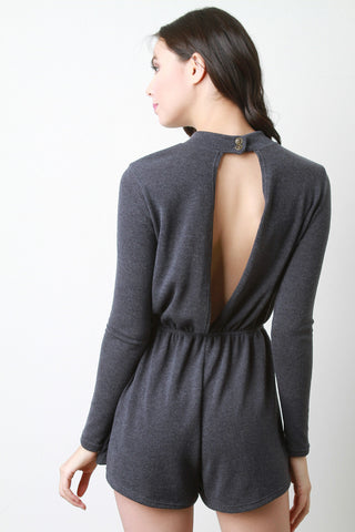 Back Keyhole Cutout Mock Neck Long Sleeves Romper