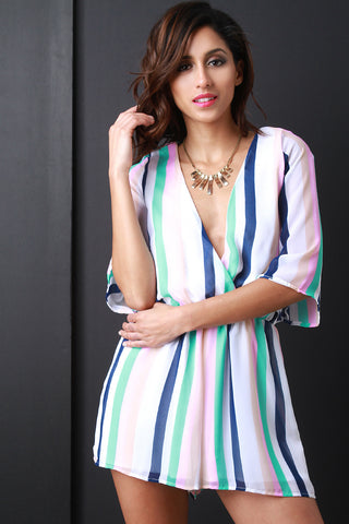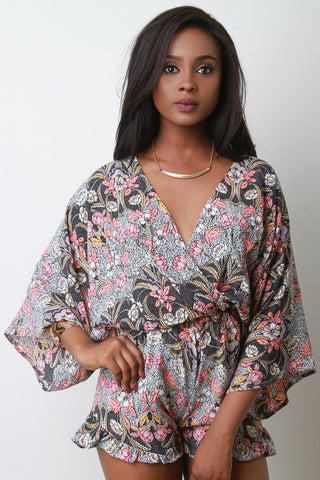 Floral Surplice Dolman Sleeve Ruffle-Hem Romper