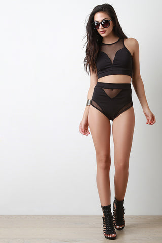 V-Neck Metallic Shield Caged Cutout Colorblock Romper