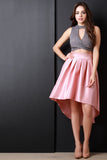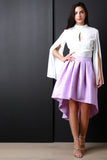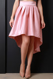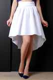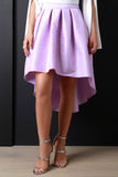 This flirty skirt features a crisp woven knit fabrication, box pleating design, back bow detail, and finished with a high-low hemline. Accessories sold separately. Made in U.S.A. 60% Polyester, 35% Nylon, 5% Spandex.