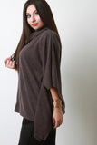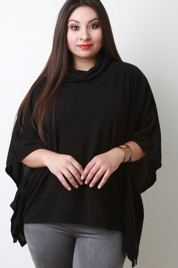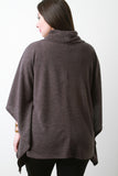 This poncho top features soft knit, cow neck design, and flowing, kimono-style short sleeves. Accessories sold separately. Made in U.S.A. 95% Polyester, 5% Spandex.