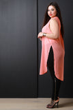 This plus size tunic top features a half placket v-neckline, sleeveless construction, microbeads trims, left chest pocket, and deep side slits. Accessories sold separately. 100% Polyester.