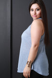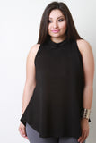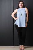 This plus size sleeveless top features a knit fabrication, back key hole detail and loose flowy fit. Accessories sold separately. 88% Rayon. 12% Polyester